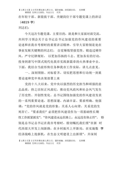 【七哥公文】2025年:在年轻干部、新提拔干部、关键岗位干部专题党课上的讲话(4819字)+更多免费公文+VX:QiGeGongWen2024