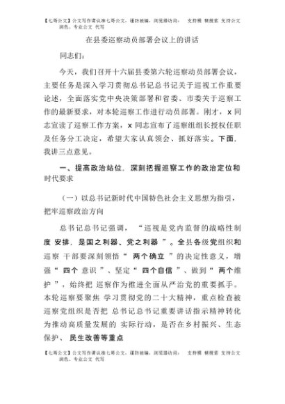 / 【七哥公文】2025年:在县委巡察动员部署会议上的讲话+更多免费公文+VX:QiGeGongWen2024
