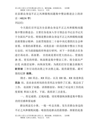 【七哥公文】2025年:在县群众身边不正之风和腐败问题集中整治推进会上的讲话(4624字)+更多免费公文+VX:QiGeGongWen2024