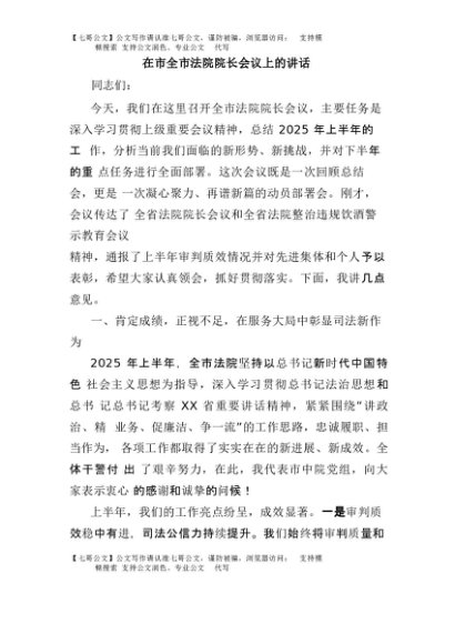 / 【七哥公文】2025年:在市全市法院院长会议上的讲话+更多免费公文+VX:QiGeGongWen2024