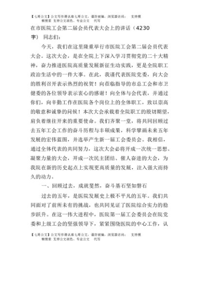 【七哥公文】2025年:在市医院工会第二届会员代表大会上的讲话(4230字)+更多免费公文+VX:QiGeGongWen2024