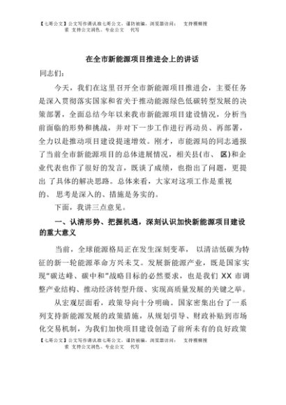 / 【七哥公文】2025年:在全市新能源项目推进会上的讲话+更多免费公文+VX:QiGeGongWen2024