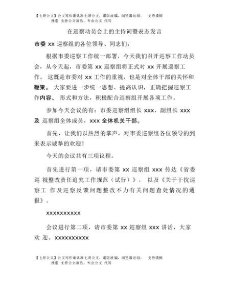 / 【七哥公文】2025年:在市委巡察组巡察动员会上的主持词暨表态发言+更多免费公文+VX:QiGeGongWen2024