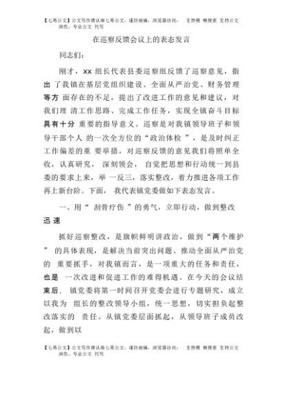 / 【七哥公文】2025年:在巡察反馈会议上的表态发言+更多免费公文+VX:QiGeGongWen2024