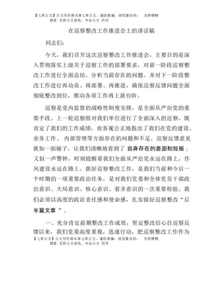 / 【七哥公文】2025年:在巡察整改工作推进会上的讲话稿+更多免费公文+VX:QiGeGongWen2024