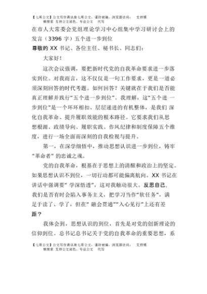 【七哥公文】2025年:在市人大常委会党组理论学习中心组集中学习研讨会上的发言(3396字)五个进一步到位+更多免费公文+VX:QiGeGongWen2024