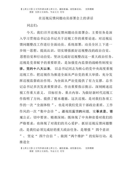 / 【七哥公文】2025年:在巡视反馈问题动员部署会上的讲话+更多免费公文+VX:QiGeGongWen2024