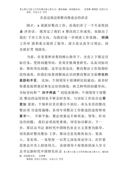 / 【七哥公文】2025年:在县巡视(巡察)整改推进会的讲话+更多免费公文+VX:QiGeGongWen2024