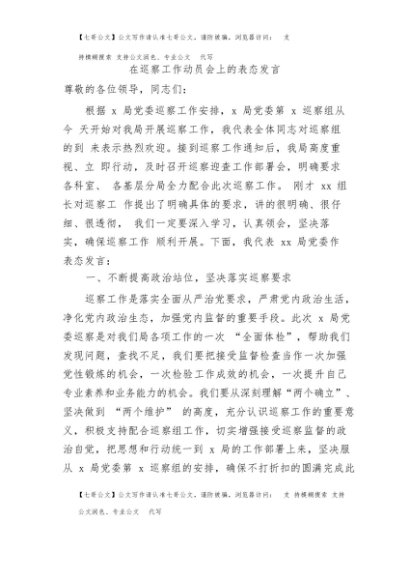 / 【七哥公文】2025年:在巡察工作动员会上的表态发言 (3)+更多免费公文+VX:QiGeGongWen2024