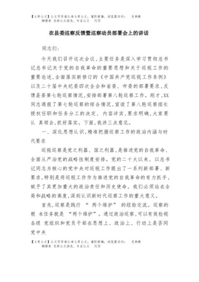/ 【七哥公文】2025年:在县委巡察反馈暨巡察动员部署会上的讲话+更多免费公文+VX:QiGeGongWen2024