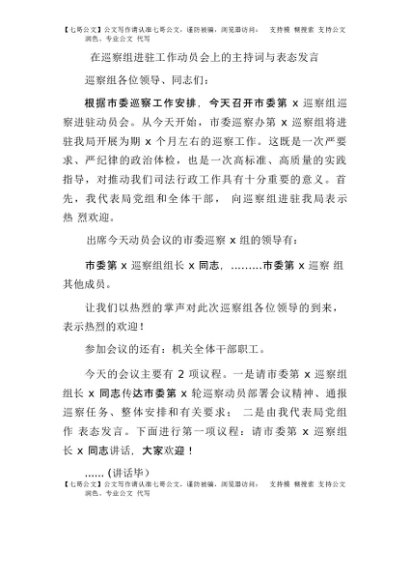 / 【七哥公文】2025年:在巡察组进驻工作动员会上的主持词与表态发言+更多免费公文+VX:QiGeGongWen2024