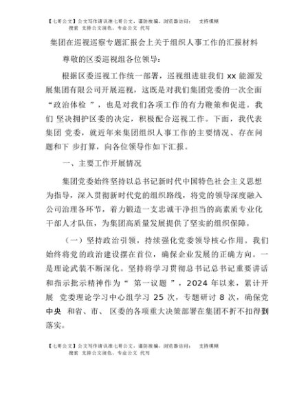 【七哥公文】2025年:在巡视(巡察)专题汇报会上关于组织人事工作的总结汇报(公司)+更多免费公文+VX:QiGeGongWen2024