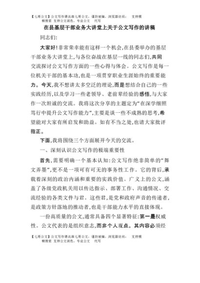 / 【七哥公文】2025年:在县基层干部业务大讲堂上关于公文写作的讲稿+更多免费公文+VX:QiGeGongWen2024