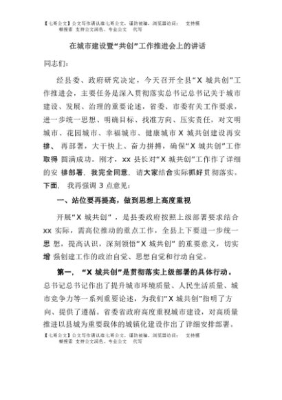 / 【七哥公文】2025年:在城市建设暨“共创”工作推进会上的讲话+更多免费公文+VX:QiGeGongWen2024