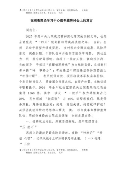 / 【七哥公文】2025年:在州委理论学习中心组专题研讨会上的发言+更多免费公文+VX:QiGeGongWen2024