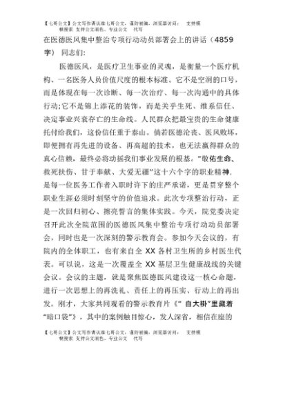 【七哥公文】2025年:在医德医风集中整治专项行动动员部署会上的讲话(4859字)+更多免费公文+VX:QiGeGongWen2024
