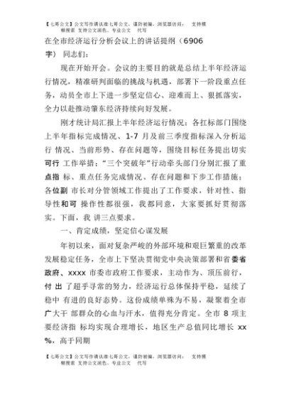 【七哥公文】2025年:在全市经济运行分析会议上的讲话提纲(6906字)+更多免费公文+VX:QiGeGongWen2024