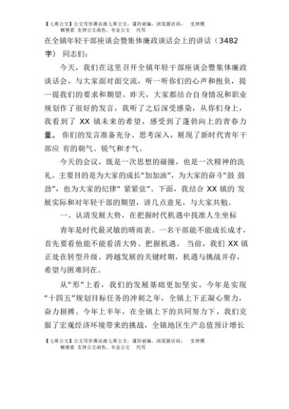 【七哥公文】2025年:在全镇年轻干部座谈会暨集体廉政谈话会上的讲话(3482字)+更多免费公文+VX:QiGeGongWen2024