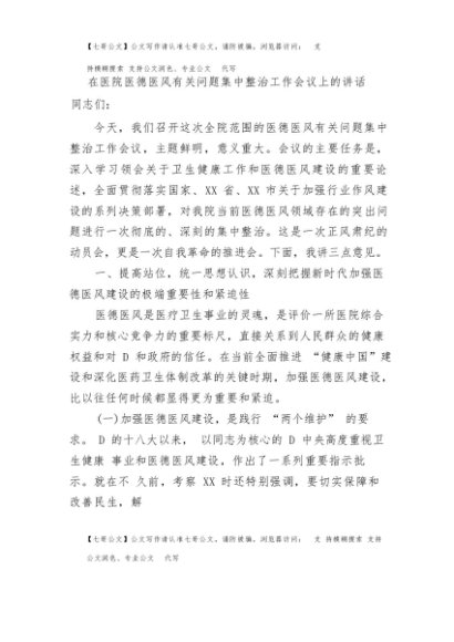 / 【七哥公文】2025年:在医院医德医风有关问题集中整治工作会议上的讲话+更多免费公文+VX:QiGeGongWen2024