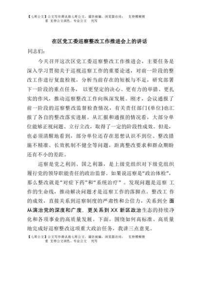 / 【七哥公文】2025年:在区党工委巡察整改工作推进会上的讲话+更多免费公文+VX:QiGeGongWen2024
