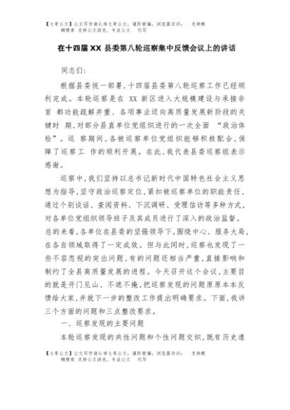 / 【七哥公文】2025年:在十四届XX县委第八轮巡察集中反馈会议上的讲话+更多免费公文+VX:QiGeGongWen2024