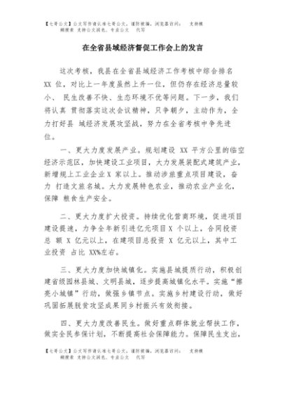 / 【七哥公文】2025年:在全省县域经济督促工作会上的发言+更多免费公文+VX:QiGeGongWen2024