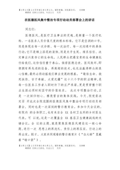 / 【七哥公文】2025年:在医德医风集中整治专项行动动员部署会上的讲话+更多免费公文+VX:QiGeGongWen2024