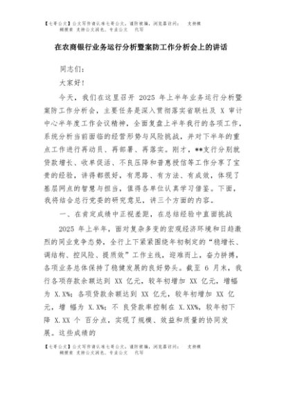 / 【七哥公文】2025年:在农商银行业务运行分析暨案防工作分析会上的讲话+更多免费公文+VX:QiGeGongWen2024