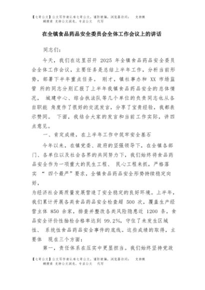 / 【七哥公文】2025年:在全镇食品药品安全委员会全体工作会议上的讲话+更多免费公文+VX:QiGeGongWen2024