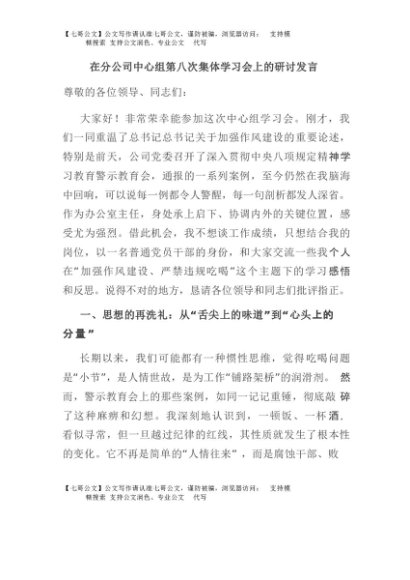 / 【七哥公文】2025年:在分公司中心组第八次集体学习会上的研讨发言+更多免费公文+VX:QiGeGongWen2024