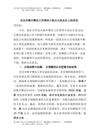 / 【七哥公文】2025年:在全市集中整治工作领导小组办公室会议上的讲话+更多免费公文+VX:QiGeGongWen2024