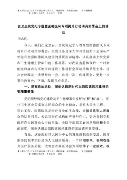 【七哥公文】2025年:在卫生院党纪专题暨医德医风专项提升行动动员部署会上的讲话+更多免费公文+VX:QiGeGongWen2024