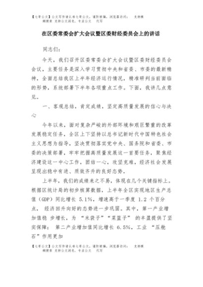 / 【七哥公文】2025年:在区委常委会扩大会议暨区委财经委员会上的讲话+更多免费公文+VX:QiGeGongWen2024