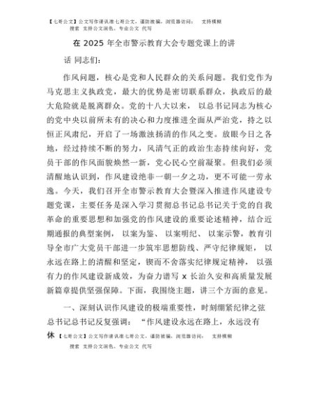 / 【七哥公文】2025年:在全市警示教育大会专题党课上的讲话+更多免费公文+VX:QiGeGongWen2024