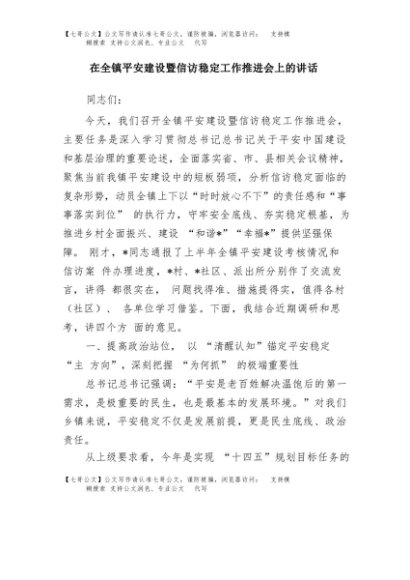 / 【七哥公文】2025年:在全镇平安建设暨信访稳定工作推进会上的讲话+更多免费公文+VX:QiGeGongWen2024