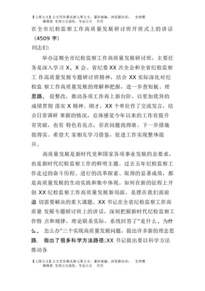 【七哥公文】2025年:在全市纪检监察工作高质量发展研讨班开班式上的讲话(4509字)+更多免费公文+VX:QiGeGongWen2024