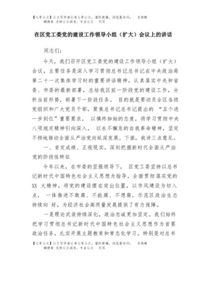 【七哥公文】2025年:在区党工委党的建设工作领导小组(扩大)会议上的讲话+更多免费公文+VX:QiGeGongWen2024