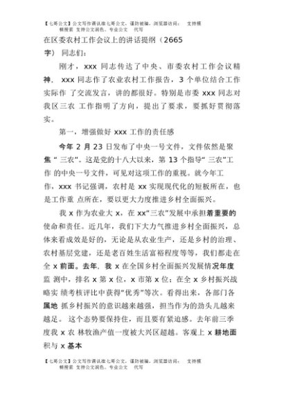 / 【七哥公文】2025年:在区委农村工作会议上的讲话提纲(2665字)+更多免费公文+VX:QiGeGongWen2024