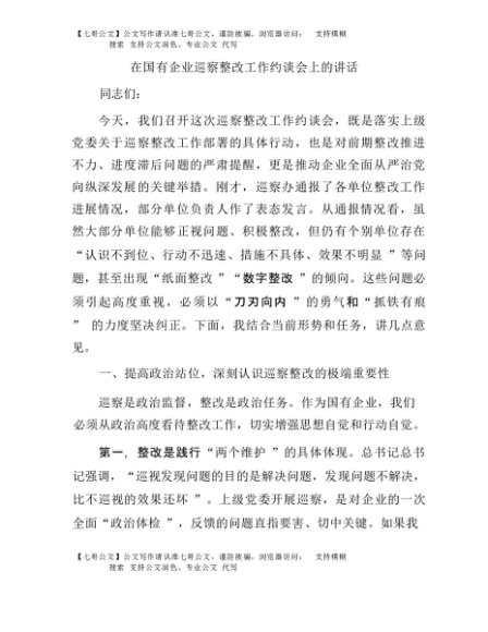 / 【七哥公文】2025年:在公司巡察整改工作约谈会上的讲话+更多免费公文+VX:QiGeGongWen2024
