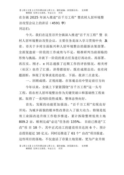【七哥公文】2025年:在全镇2025年深入推进“百千万工程”暨农村人居环境整治攻坚会议上的讲话(4591字)+更多免费公文+VX:QiGeGongWen2024