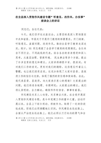 【七哥公文】2025年:在全县深入贯彻作风建设专题“听意见、改作风、办实事”座谈会上的讲话+更多免费公文+VX:QiGeGongWen2024