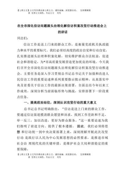 【七哥公文】2025年:在全市深化信访问题源头治理化解信访积案攻坚行动推进会上的讲话+更多免费公文+VX:QiGeGongWen2024
