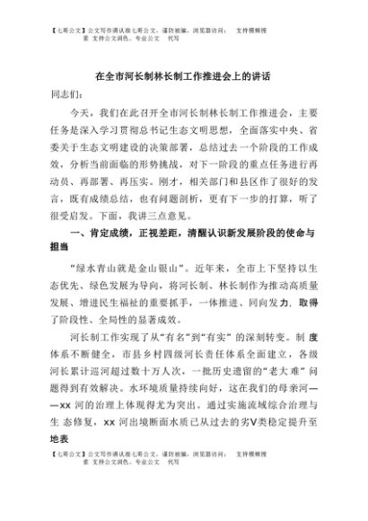 / 【七哥公文】2025年:在全市河长制林长制工作推进会上的讲话+更多免费公文+VX:QiGeGongWen2024