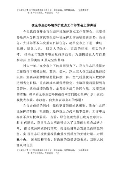 / 【七哥公文】2025年:在全市生态环境保护重点工作部署会上的讲话+更多免费公文+VX:QiGeGongWen2024