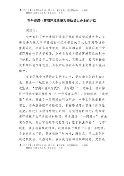 / 【七哥公文】2025年:在全市深化营商环境改革攻坚动员大会上的讲话+更多免费公文+VX:QiGeGongWen2024