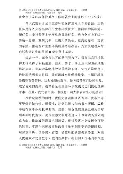 【七哥公文】2025年:在全市生态环境保护重点工作部署会上的讲话(2823字)+更多免费公文+VX:QiGeGongWen2024
