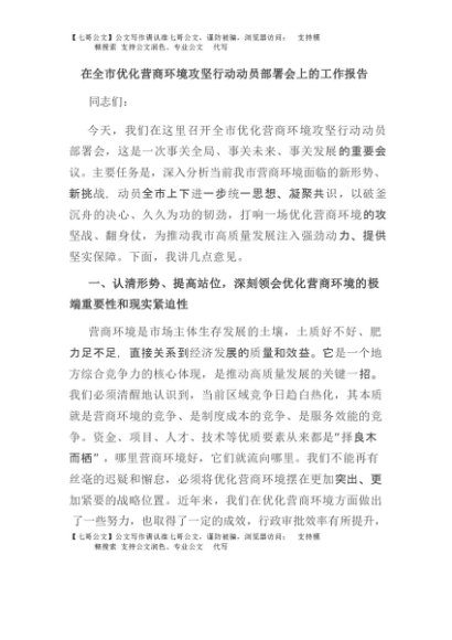 【七哥公文】2025年:在全市优化营商环境攻坚行动动员部署会上的工作报告+更多免费公文+VX:QiGeGongWen2024