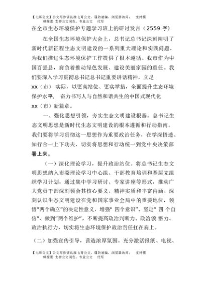 【七哥公文】2025年:在全市生态环境保护专题学习班上的研讨发言(2559字)+更多免费公文+VX:QiGeGongWen2024