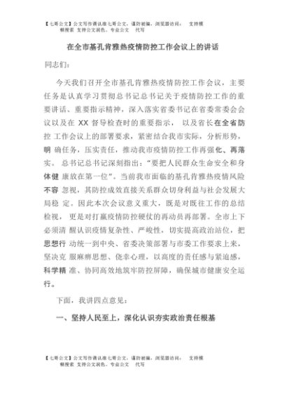 / 【七哥公文】2025年:在全市基孔肯雅热疫情防控工作会议上的讲话+更多免费公文+VX:QiGeGongWen2024