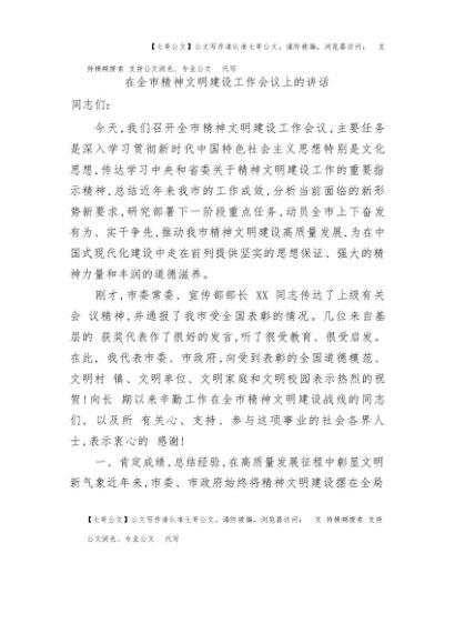 / 【七哥公文】2025年:在全市精神文明建设工作会议上的讲话+更多免费公文+VX:QiGeGongWen2024
